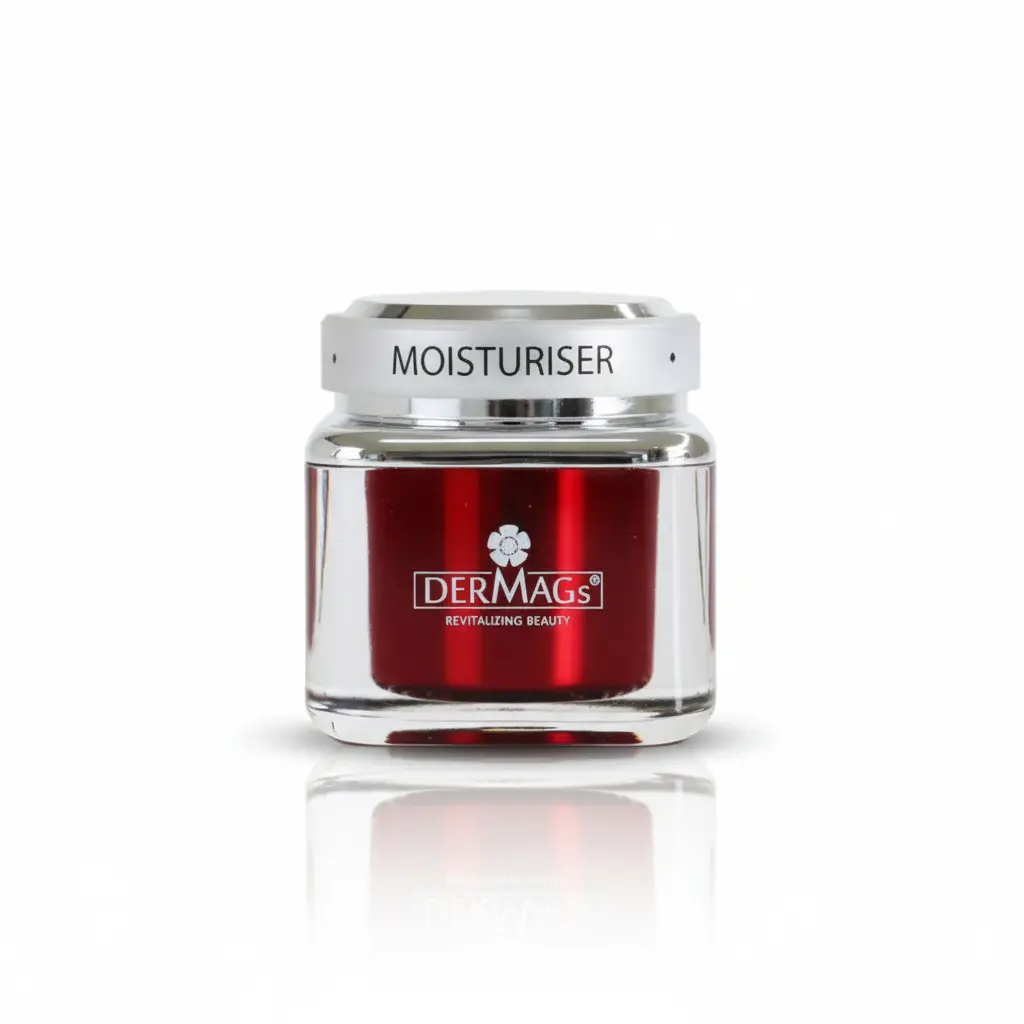 DerMAGs Hydrating Moisturiser. Berasaskan air, tidak melekit dan kadar penyerapan pantas. Terbukti secara klinikal memberi ketenangan, kelegaan dan kelembapan serta khasiat kepada kulit untuk mencegah kekeringan dan garis-garis halus pada wajah serta membaiki struktur kulit untuk meningkatkan pertahanan kulit terhadap sinar matahari berlebihan atau kelembapan persekitaran. Menghasilkan kulit yang cerah, lembut, sihat dan tona warna sekata.